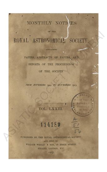 | Publisher | : | Royal Astronomical Society, William Wesley & Son, 28 Essex Street, Strand, London, W. C. |