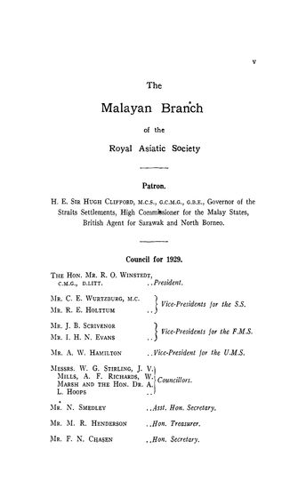 Malayan Branch of the Royal Asiatic Society, Council fo ...