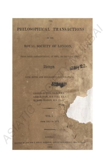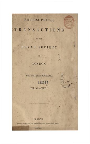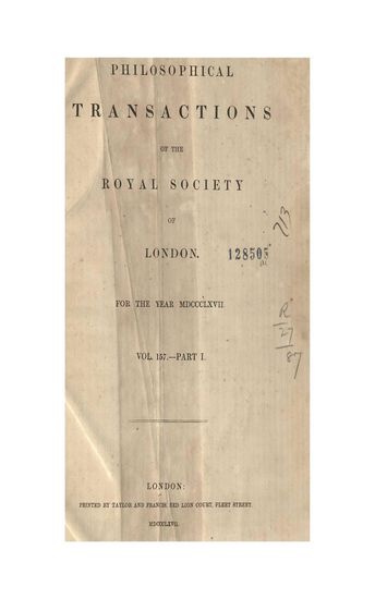 | Subject | : | The Philosophical Transactions of the Royal Society of London |