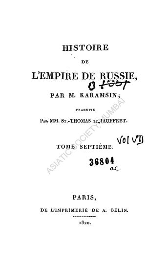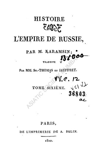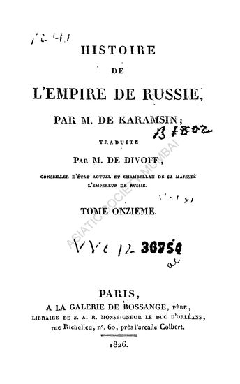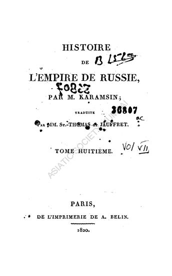 | Author | : | Karamsin, Nikolai Mikhailovich Divoff, M. de (Tr.) |