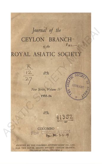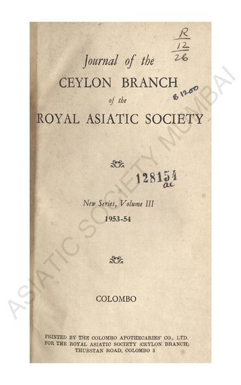| Publisher | : | The Colombo Apothecaries' Co., Ltd. for the Royal Asiatic Society (Ceylon Branch) |