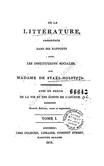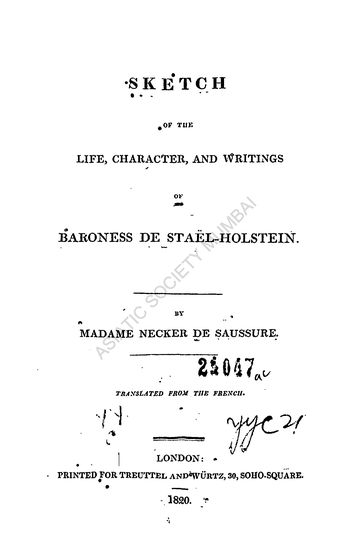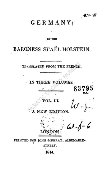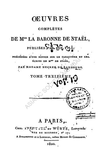 | Author | : | Stael-Holstein, baroness de Achille, Leon Victor (Ed.) Auguste, Louis (Ed.) |