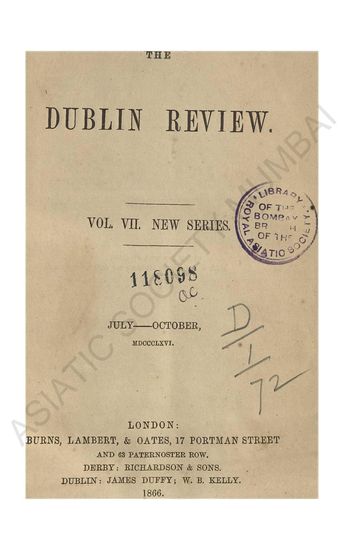 Dublin Review. Vol VII, New Series. July- October. 1866 ...