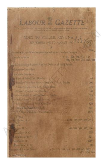 Labour Gazette, Index to Volume VII, nos. 1-12. Septemb ...