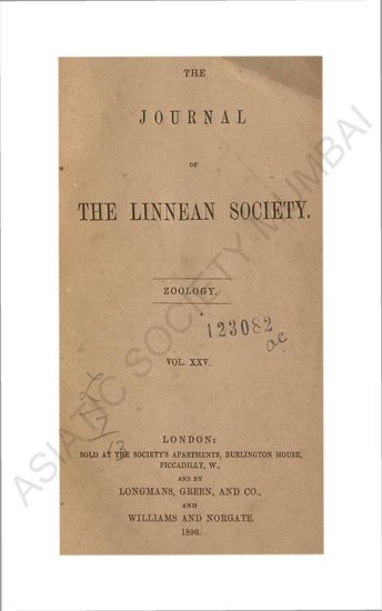 Journal of the Linnean Society, Zoology, Vol. XXV. 1896 ...