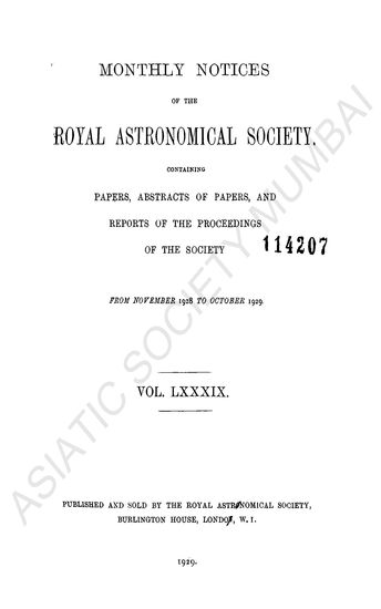 Monthly Notices of the Royal Astronomical Society, Vol. ...