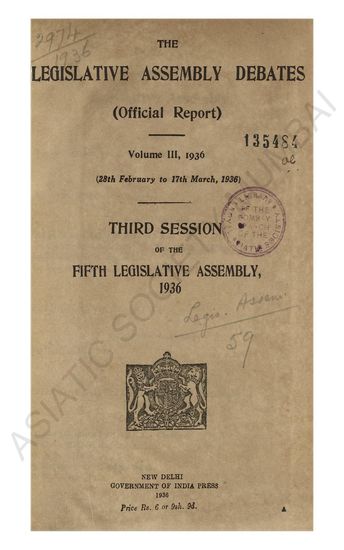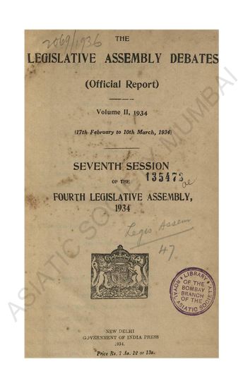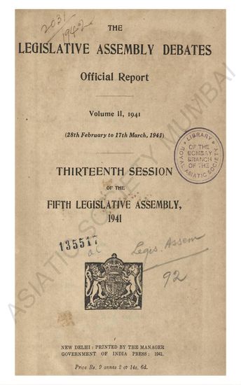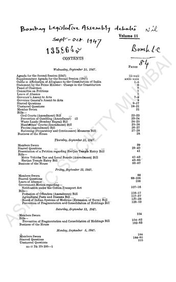 Bombay Legislative Assembly Debates Contents. Vol XIII. ...
