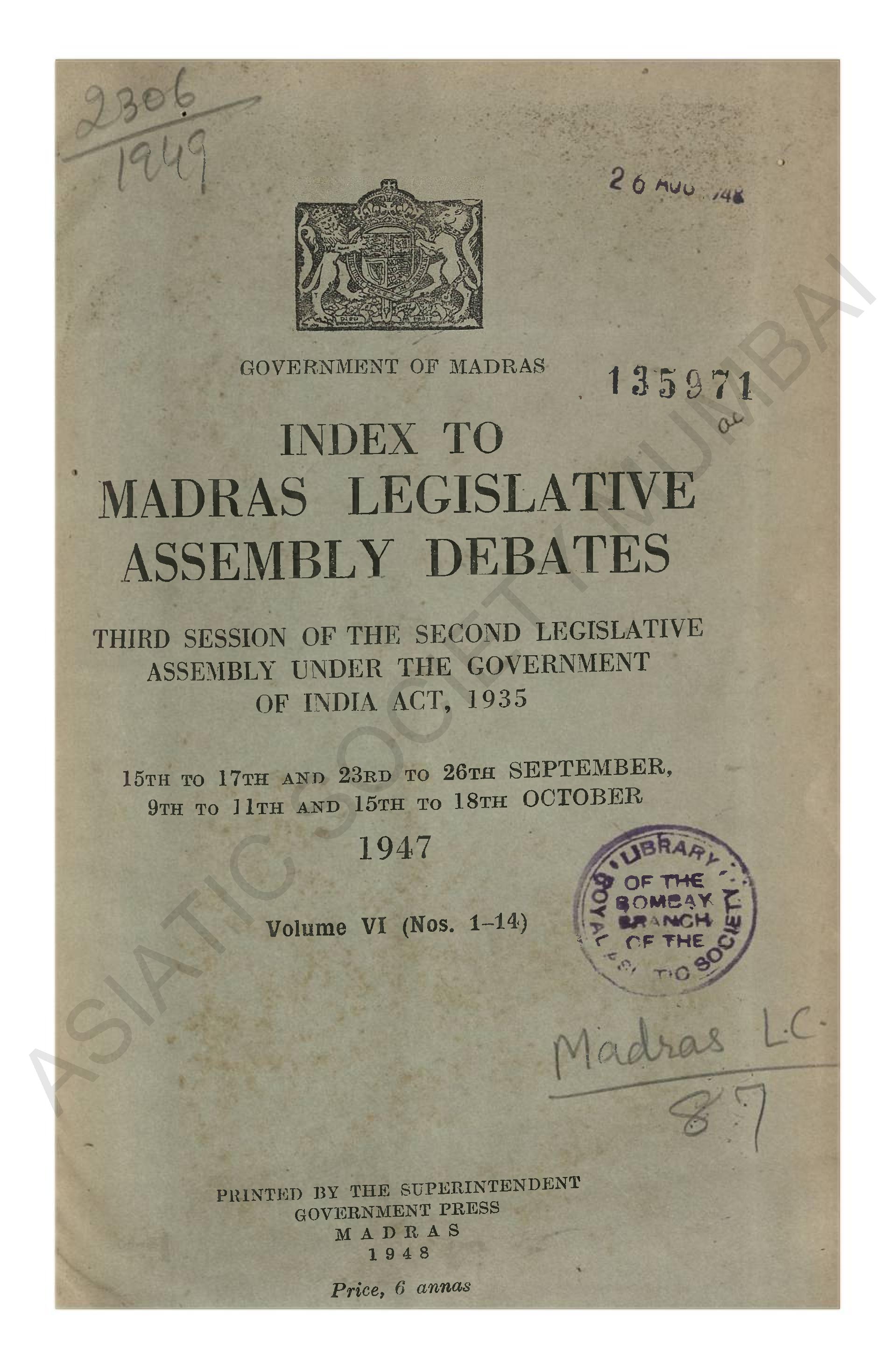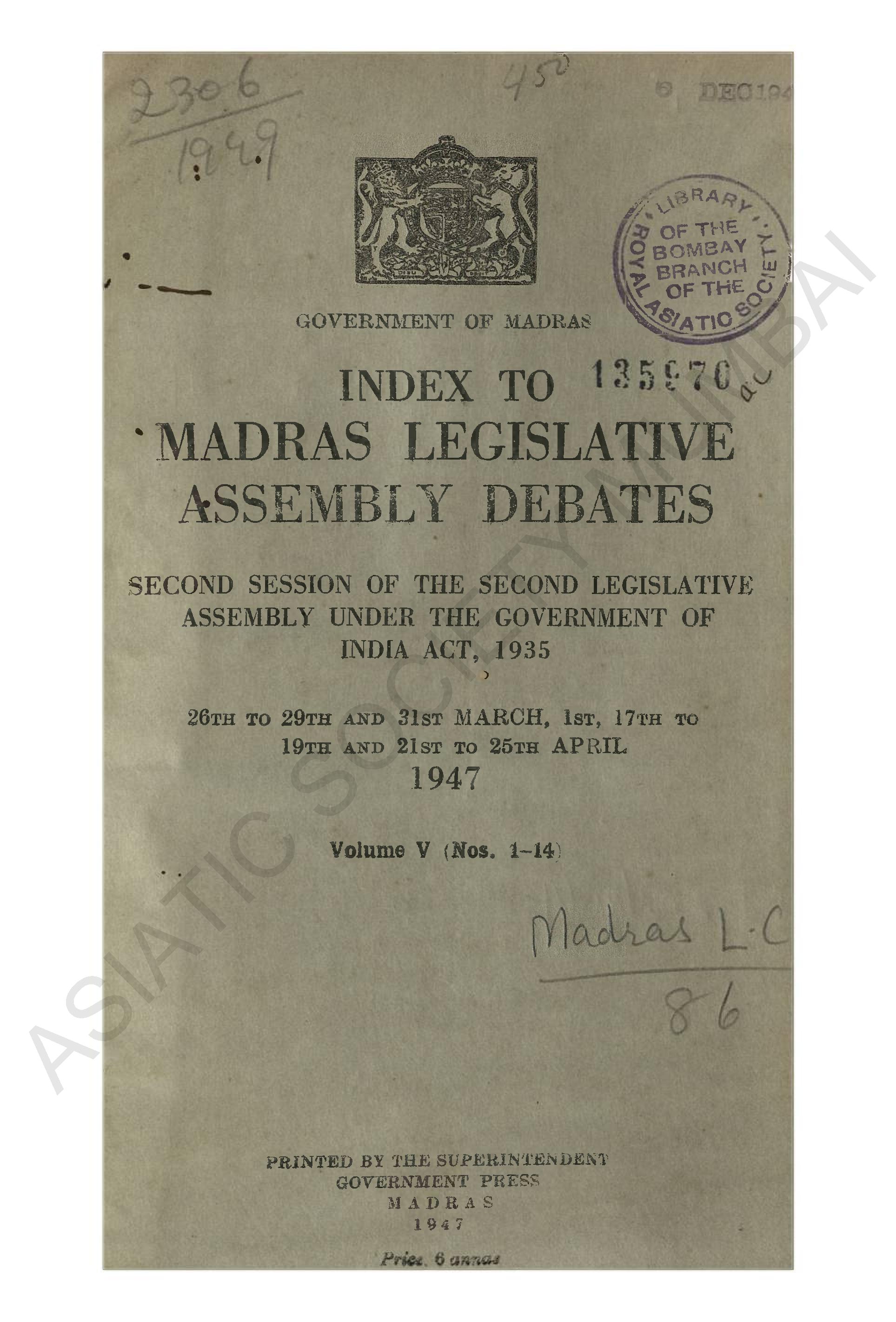 Index to Madras Legislative Assembly Debates, Third Ses ...