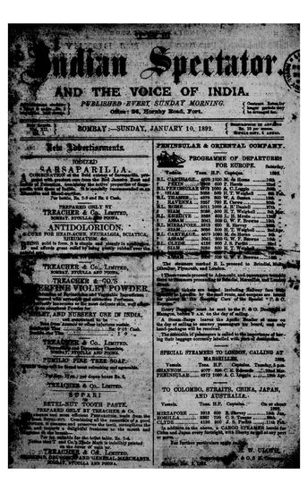 Indian Spectator, January 10, 1892.
