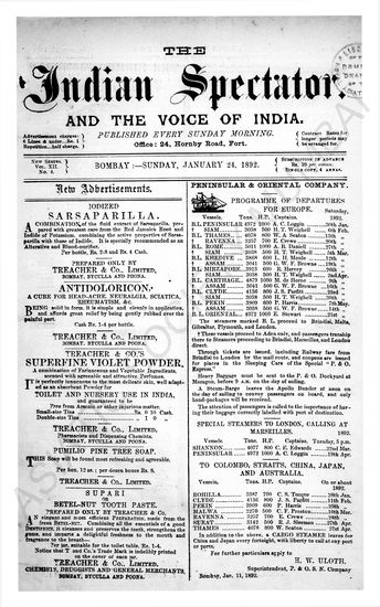 Indian Spectator, January 24, 1892.