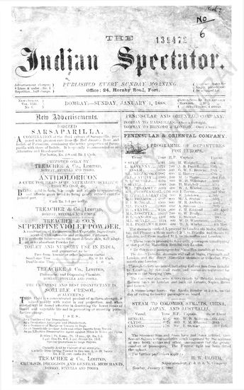 Indian Spectator, January 01, 1888.