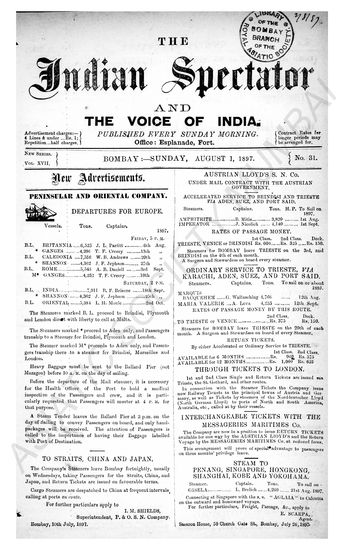 Indian Spectator, August 01, 1897.