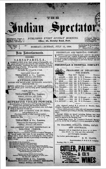 Indian Spectator, July 08, 1883.