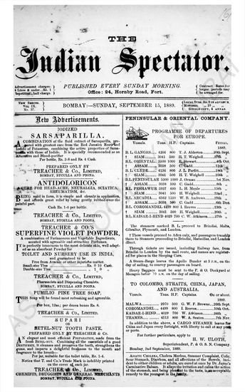 Indian Spectator, November 03, 1889.