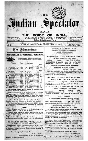Indian Spectator, December 08, 1889.