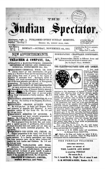 Indian Spectator, November 08, 1885.