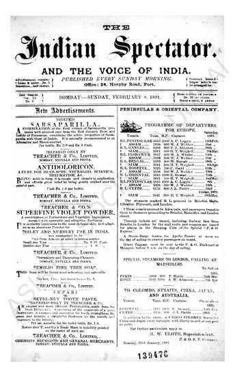 Indian Spectator, February 08, 1891.