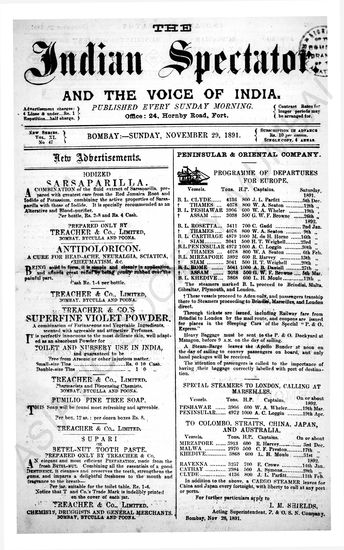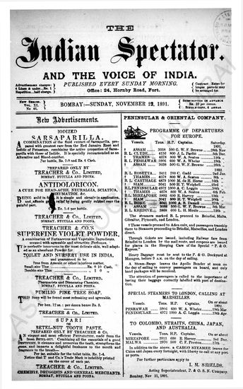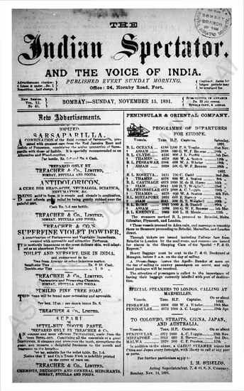 Indian Spectator, November 01, 1891.