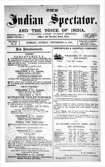 Indian Spectator, September 13, 1891.