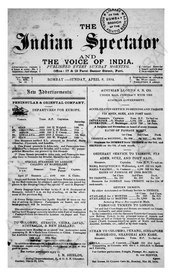 Indian Spectator, April 01, 1894.