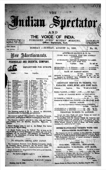 Indian Spectator, August 07, 1898.