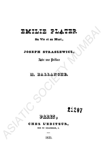 Emilie Plater: Sa Vie et sa Mort,.