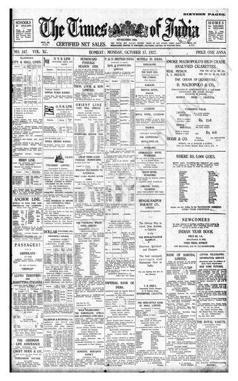 Times of India, October 17, 1927.