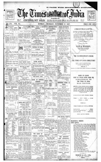 Times of India, November 17, 1927.