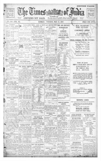 Times of India, May 17, 1927.