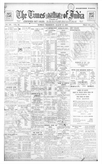 Times of India, August 17, 1927.