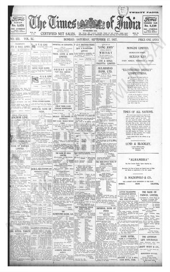 Times of India, September 17, 1927.