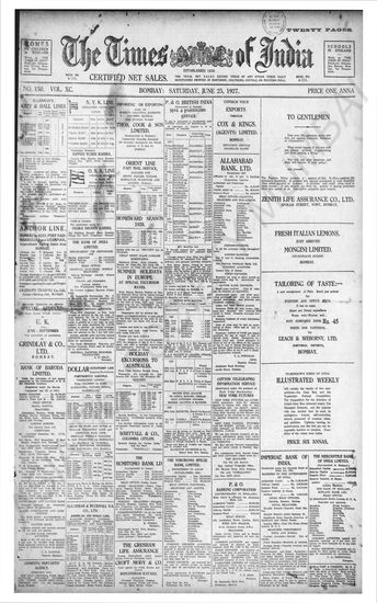 Times of India, June 25, 1927.