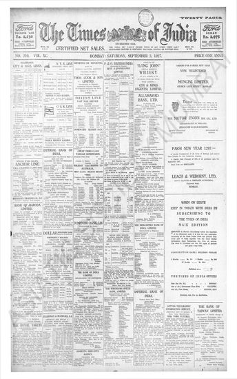 Times of India, September 03, 1927.