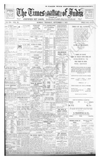 Times of India, September 08, 1927.