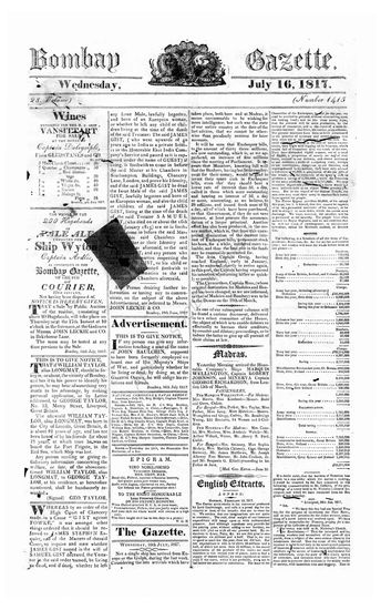 The Bombay Gazette (Weekly Edition), 16 July 1817