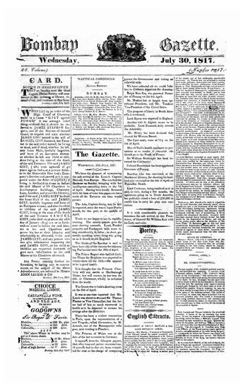 The Bombay Gazette (Weekly Edition), 2 July 1817