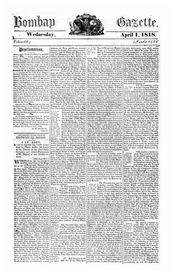 The Bombay Gazette (Weekly Edition), 1 April 1818