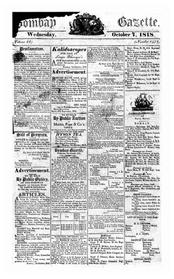 The Bombay Gazette (Weekly Edition), 7 October 1818