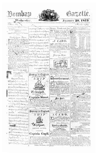 The Bombay Gazette (Weekly Edition), 20 January 1819