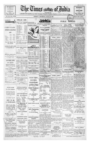 Times of India, July 23, 1936.