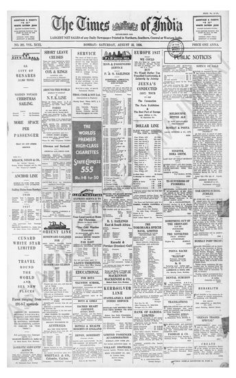 Times of India, August 22, 1936.