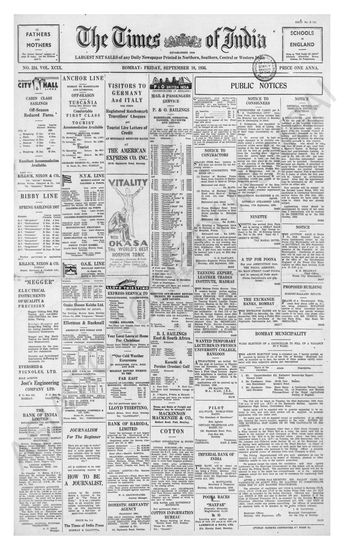Times of India, September 18, 1936.