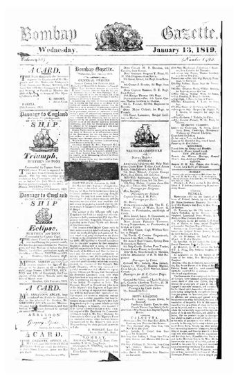 The Bombay Gazette (Weekly Edition), 13 January 1819