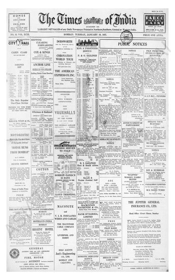 Times of India, January 19, 1937.