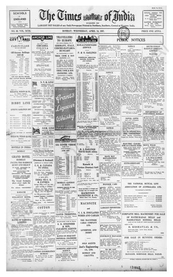 Times of India, April 14, 1937.