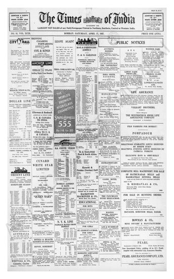 Times of India, April 17, 1937.