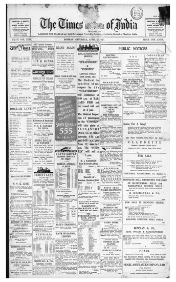 Times of India, April 24, 1937.