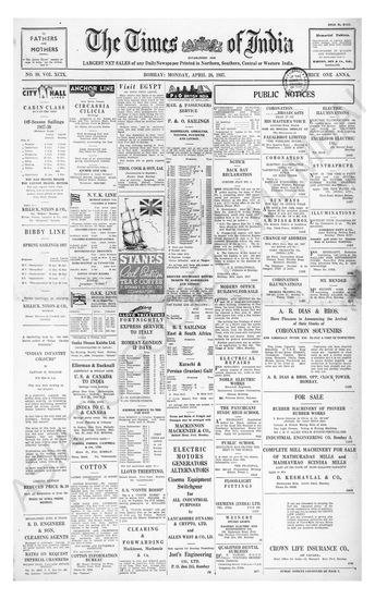 Times of India, April 26, 1937.