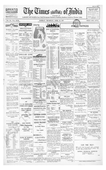 Times of India, April 29, 1937.
