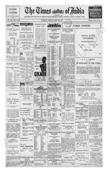 Times of India, July 30, 1937.